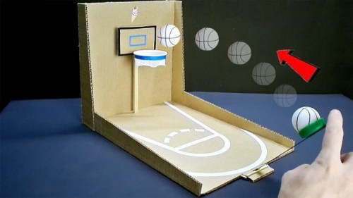 В коробку нужно вставить пластиковое или металлическое кольцо, чтобы оно было больше шарика. Все, баскетбол готов. Если скучно, такая игра может занять на целый день.