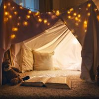 Кто не строил шалаш в детстве? Развлечь ребенка 21 века этим также можно. Поставьте на расстоянии в 1 метр стулья или кресла и накройте одеялом. Получится шикарное микрожилье внутри квартиры.
