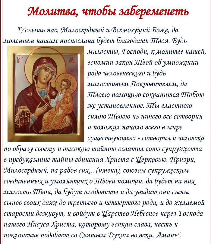 Молитва Пресвятой Богородице для зачатия