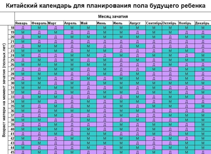 Во всем мире широкое распространение получило планирование пола будущего ребенка по китайскому календарю. Согласно ему, женщина в разном возрасте и разном месяце может зачать малыша определенного пола.