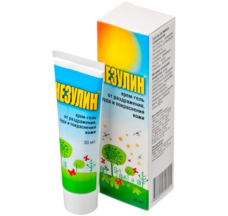 Гель после укусов насекомых Незулин производится на основе травяных экстрактов и Д-пантенола, с добавлением эфирных масел. Оказывает противоаллергическое и репаративное действие. Останавливает развитие инфекционного и воспалительного процесса.