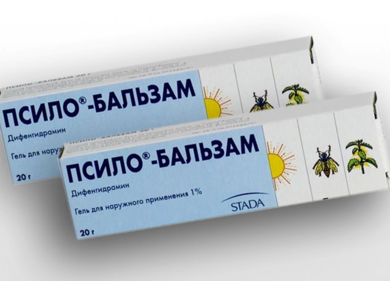 Эффективный бальзам — гель Псило содержит дифенгидрамин (димедрол). Устраняет отеки, уплотнения, зуд, воспаление и красноту.
