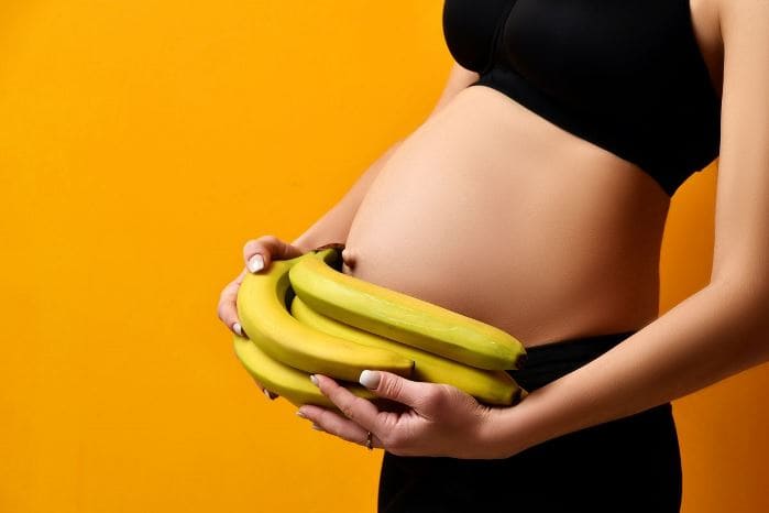 На ранних сроках беременности употребление бананов в небольшом количестве положительно влияет на состояние будущей матери и плода, так как они содержат фолиевую кислоту, которая участвует в формировании нервной системы плода.