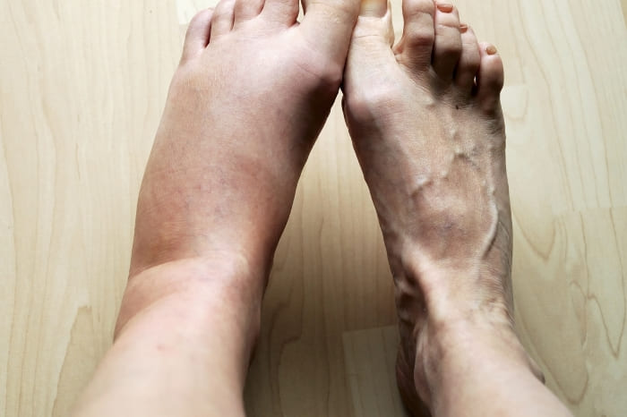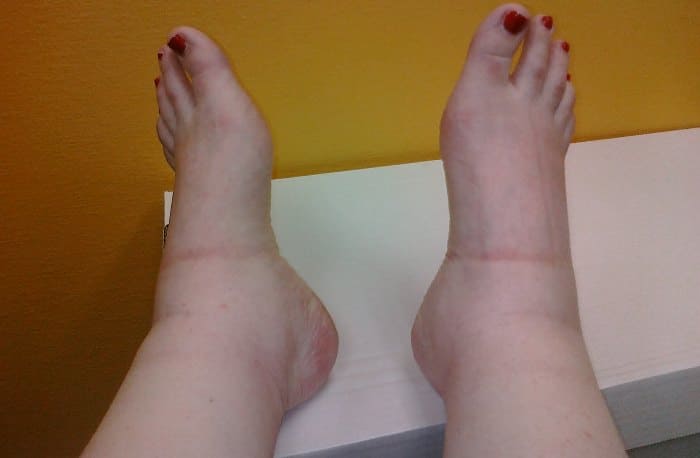Чаще всего сначала отекают лодыжки, затем водянка распространяется вверх по телу. В некоторых случаях отеки добираются до лица, меняя его черты до неузнаваемости.